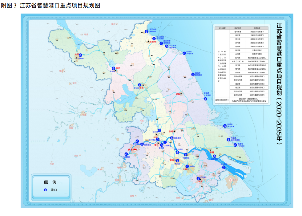加快推进智慧港口示范工程建设。编制江苏省智慧港口建设实施方案,推进沿江沿海港口、主要内河港口和地区性重要港口智慧化建设,提升区域性国际枢纽、江海中转综合枢纽效能,并发挥在连接上海、长三角及中上游地区经济社会发展中的重要纽带作用。